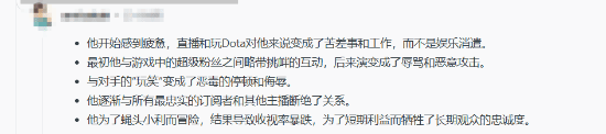 目前我们尚不清楚布狗为何要卖掉这枚意义非凡的冠军戒指,但结合他近年的状态,网友的猜测并非没有道理。早年间布狗就曾远离职业赛场转型直播,而熟悉他直播风格的玩家都知道,近年他的直播内容争议不断,频繁出现的争议性言论和操作,让他慢慢失去了大量粉丝。有网友直言,“直播和DOTA2对他来说,已经变成了苦差事和工作,而不是娱乐消遣”。