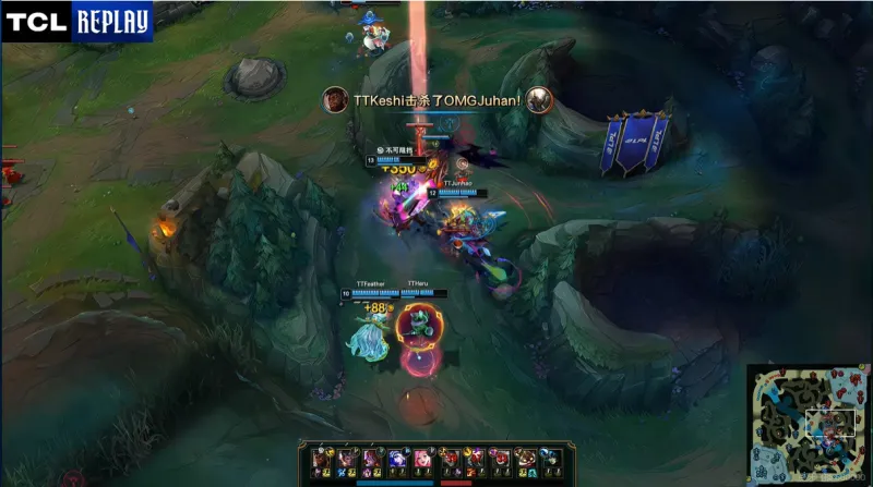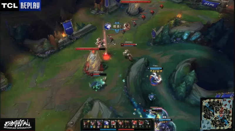 第二十三分钟:TT推进途中冒失上去被OMG反打,OMG顺势打出一波一换四