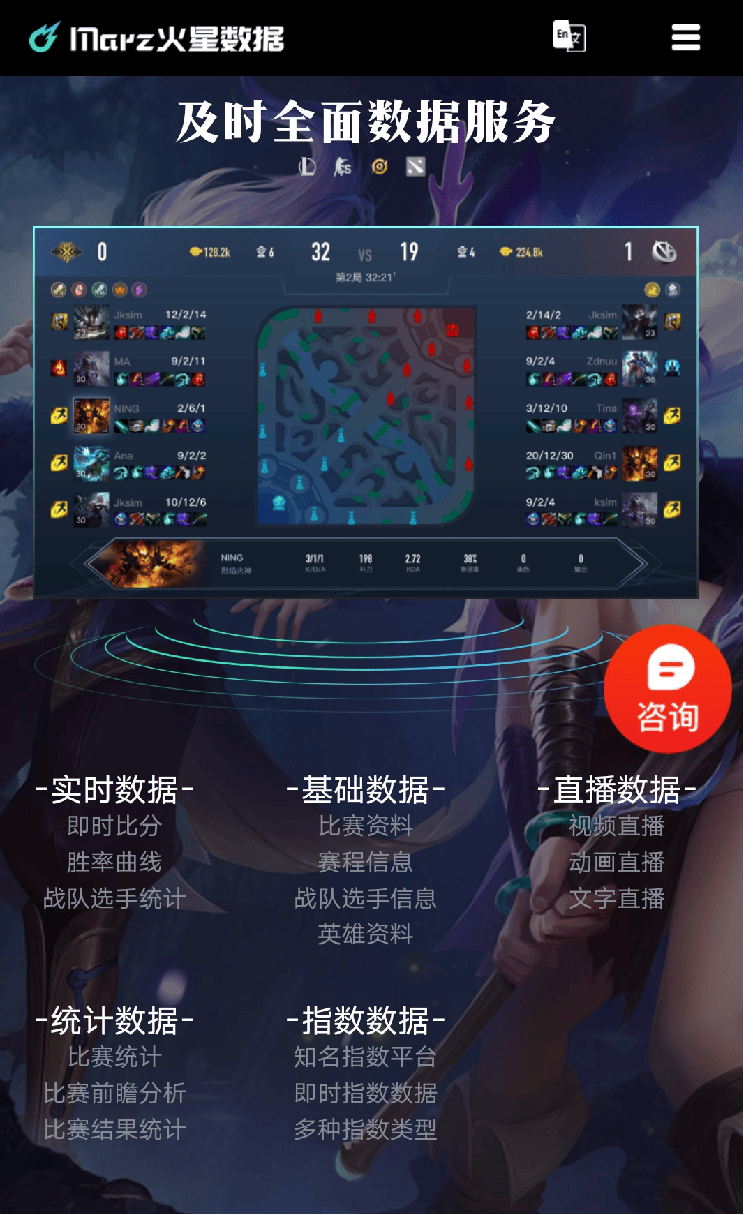 目前,火星数据采用的是pro版本,提供的LOL、DOTA2、CS:GO以及王者荣耀等游戏的更新速度非常快,王者速度甚至达到了比直播快2分钟,LOL、CS:GO、王者做到了每5秒一更新。而全速数据虽然接入速度快,但提供的也是普通版数据,这在高端用户眼中可能就显得稍显不足,这在专业领域或许是一个较大的劣势。