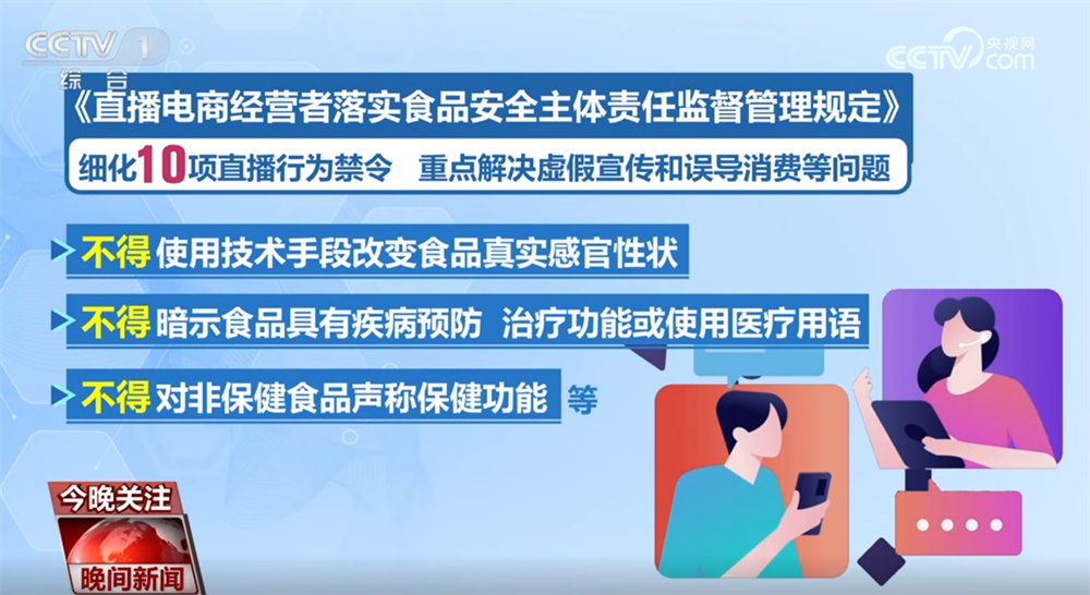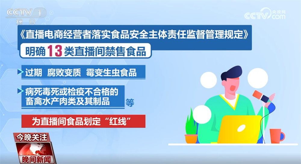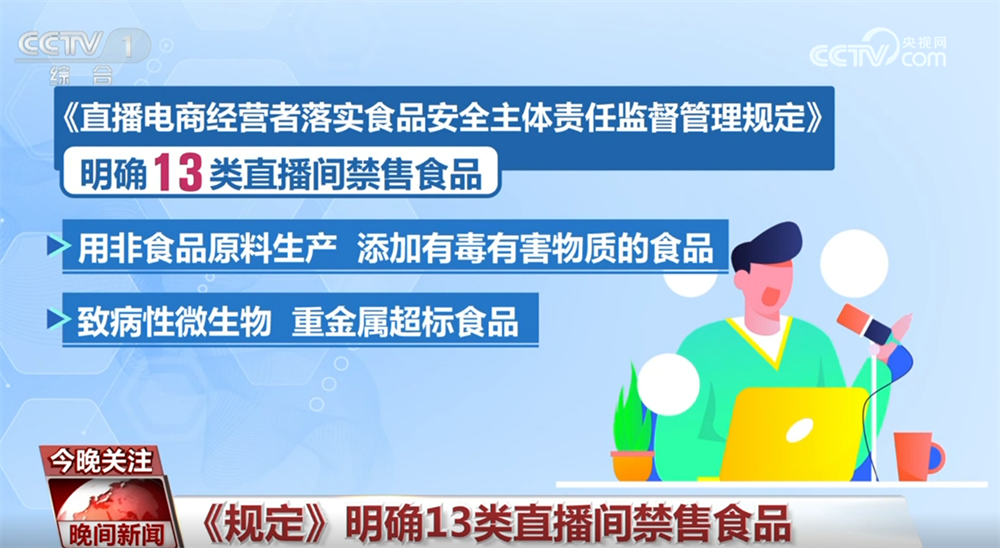 市场监管总局食品安全总监 孙会川:向社会释放出一个明确的信号,不管是直播间里的货,还是直播间里的人,平台都必须得管;具体管什么、怎么管,平台必须按照要求的“规定动作”不打折扣做到位。不然,如果出了食品安全问题,平台就必须要负责到底。